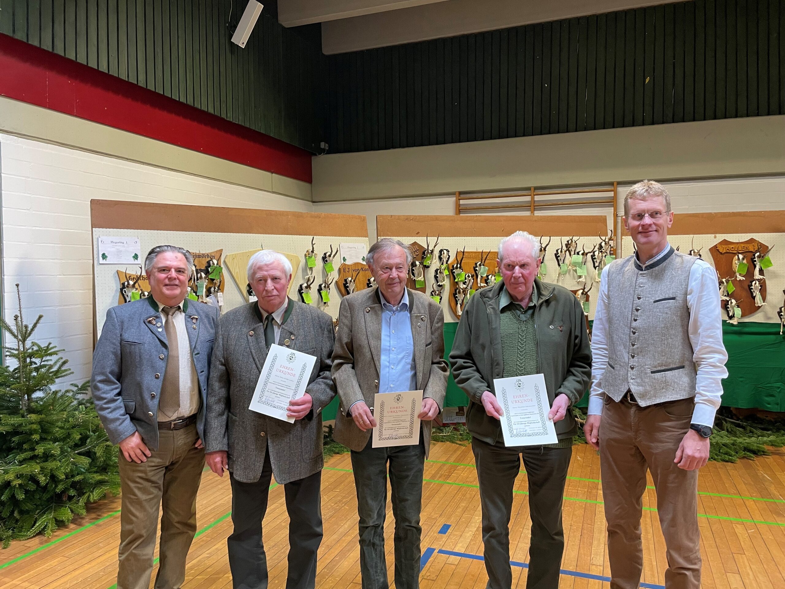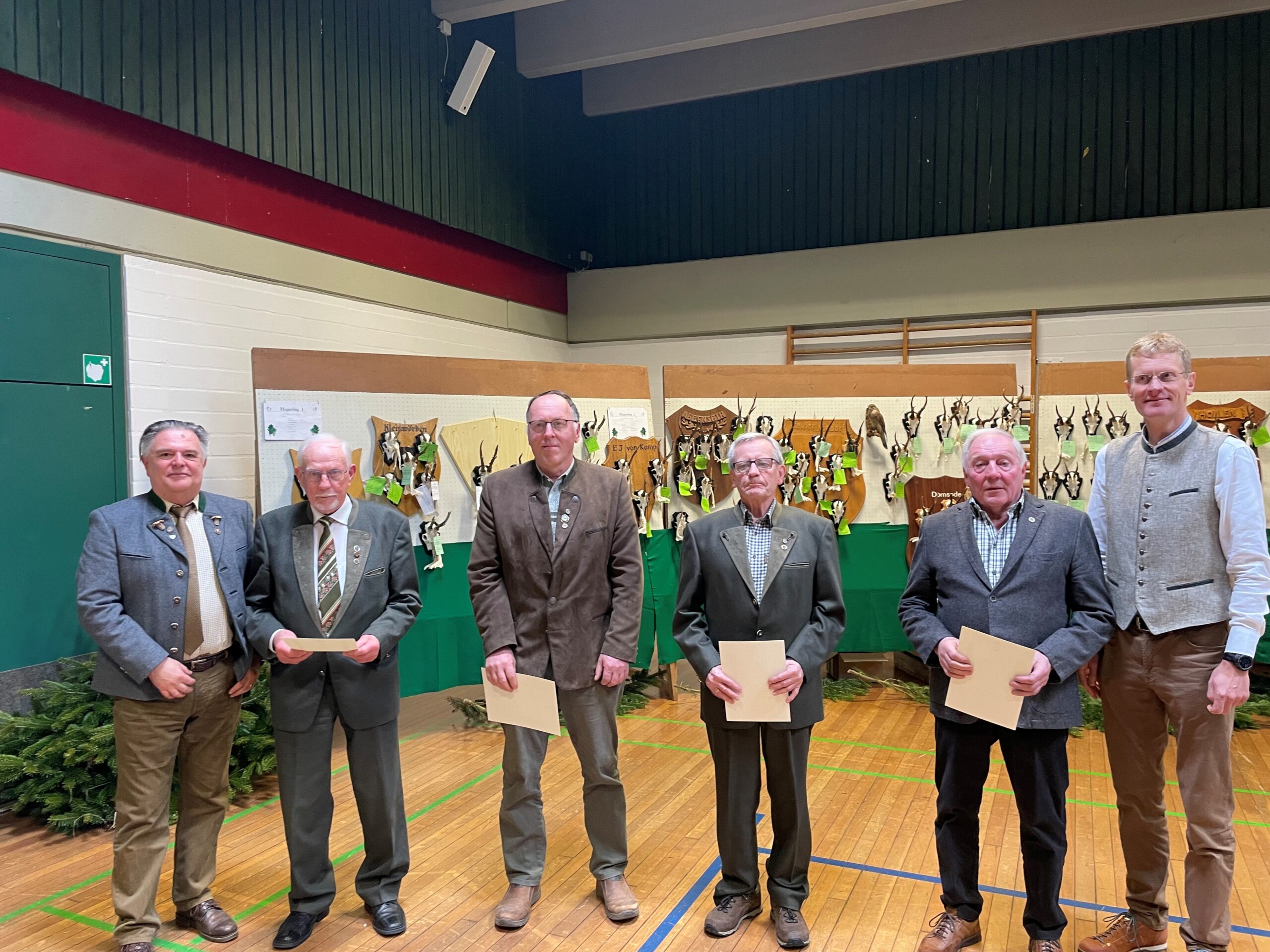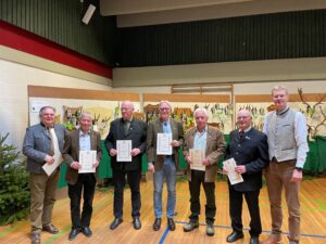 Ein besonderer Programmpunkt waren die Ehrungen. Die 25- bis 40-jährige Mitgliedschaften wurden bereits im Kreise der Hegeringversammlungen verliehen. In gleich vier Hegeringen wurden neue Hegeringleiter gewählt. Die bisherigen Hegeringleiter wurden im Rahmen der Versammlung gebührend verabschiedet.