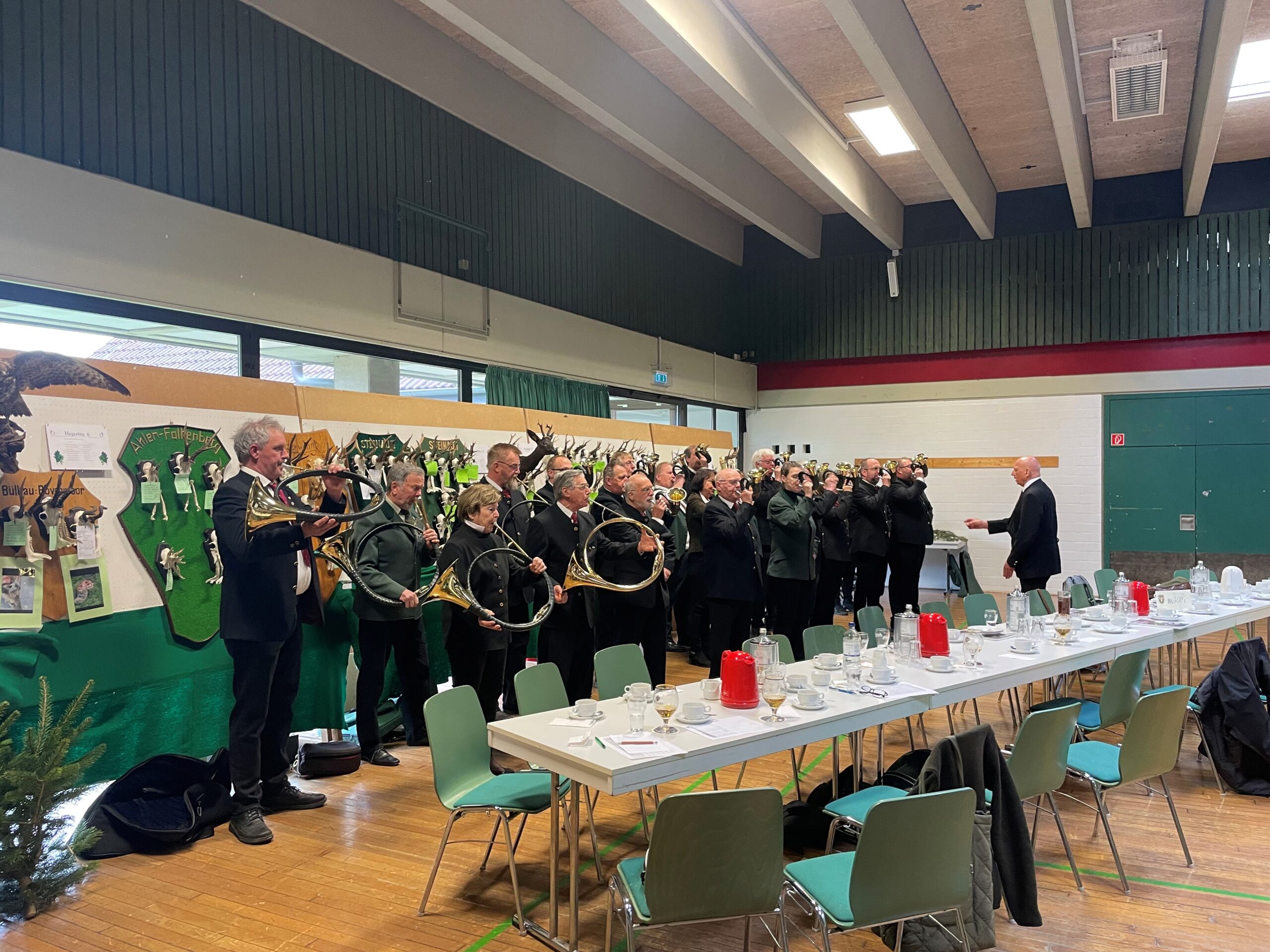 Im Anschluss stellte Klaus Dock den diesjährigen Streckenbericht unter musikalischer Begleitung der Bläser vor. Dabei wurde unter anderem der reibungslose Ablauf bei der Entnahme des Problemwolfs hervorgehoben. Gleichzeitig rief er zu einer verstärkten Bejagung invasiver Arten auf.
